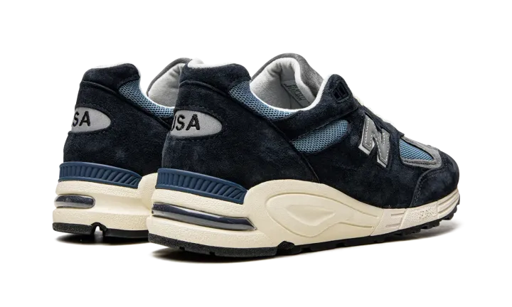 The New Balance 990 V2 Made in USA "Navy" is a blue-based colorway of the lifestyle shoe from the collaboration between Teddy Santis and New Balance. In 2021, Santis was named the Creative Director of New Balance's Made in the USA line after his successful and wildly popular collaborations with the footwear company through his Aimé Leon Dore clothing brand over the years. He released his debut solo collection with New Balance in April 2022. The "Navy" 990 V2 Made in USA colorway features navy pig suede overlays atop a light blue mesh base. Grey suede overlays are found on the forefoot and heel. A silver "N" logo appears on both sides of the shoe. The cream-colored rubber midsole gives the shoe a throwback-inspired appearance. Release date: August 25, 2022
