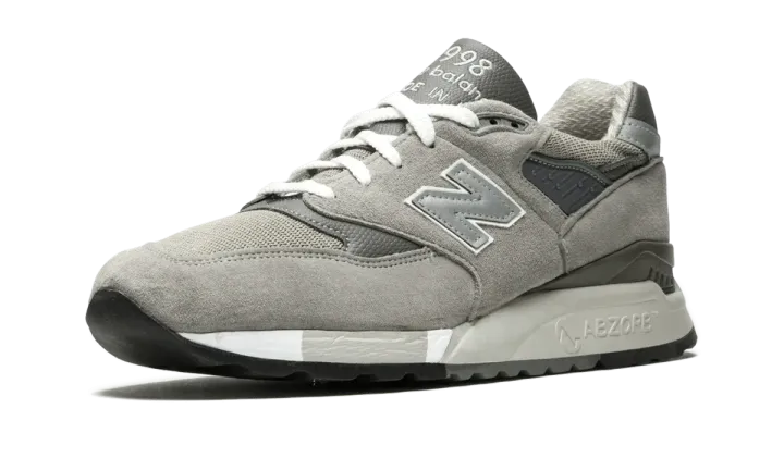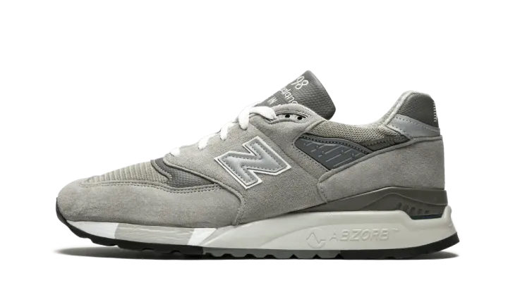 The New Balance M998 in shades of grey is as classic as running shoes come. Made in the USA, these shoes are put together using premium suede and synthetic materials. The "998 New Balance Made in the USA" is sewn in large type across the top of the tongue. The ABZORB® cushioning in the midfoot provides the shock absorption runners need, while the sleek aerodynamic profile ensures a stylish look on foot.