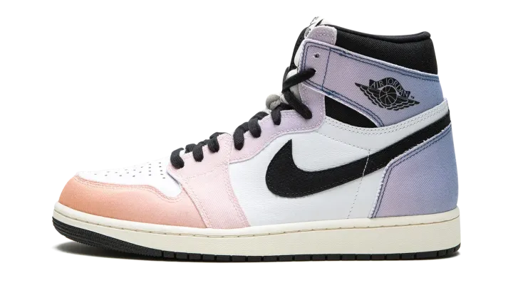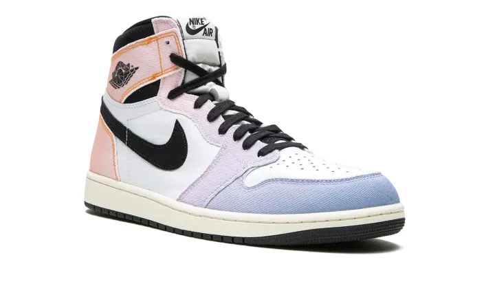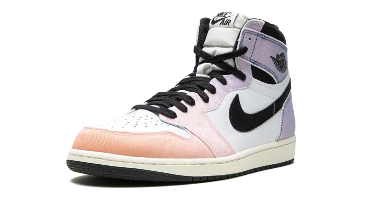 The Air Jordan 1 High OG "Skyline" is a colorway of Michael Jordan's first signature shoe that is inspired by the original Jordan 1 campaign rollout. In a unique way, the Jordan 1 High OG "Skyline" is influenced by the purple and orange hues of the skyline photo of "The GOAT" wearing the original Jordan 1. The shoe features a white leather base with denim overlays that are designed with a Vivid Orange appearance that gradients into Lilac towards the heel, a nod to the orange-to-purple hue of the skyline. A black "Wings" logo appears on the collar and "Nike Air" detailing is found on the tongue. Release date: April 8, 2023