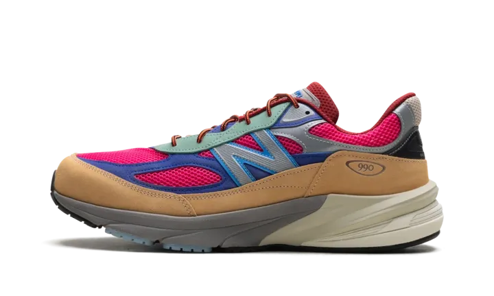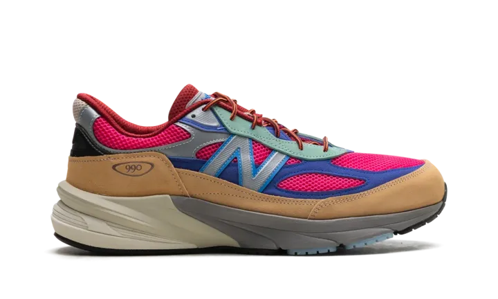 The Action Bronson x New Balance 990v6 "Amazoñia" is another smash hit for the hip-hop artist. For the "Amazoñia" 990, Bronson used tan leather on the bottom part of the upper and contrasted it with bold pops of pink, purple, blue, and maroon up top. It's a head-turning design for the 990v6 that suits Action Bronson's vibrant personality.