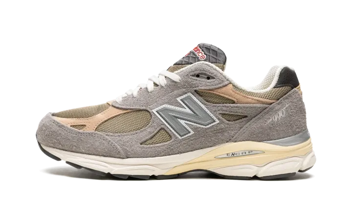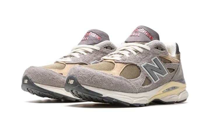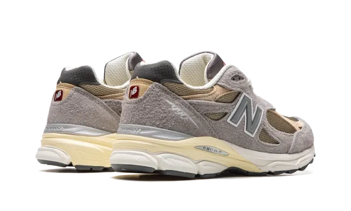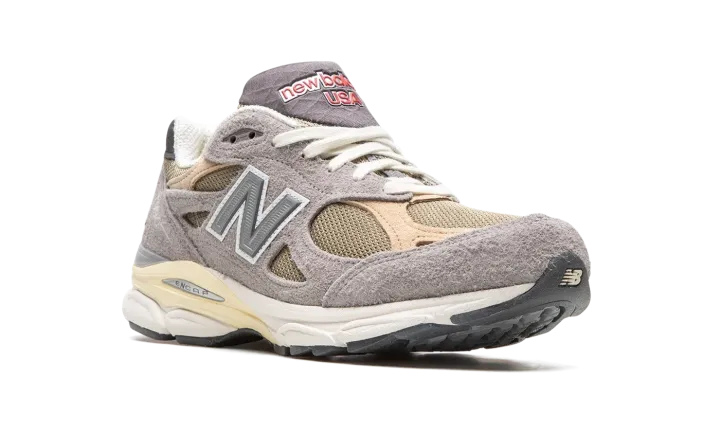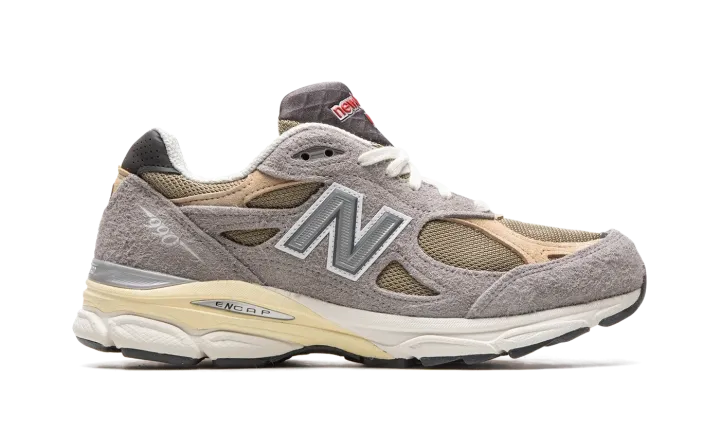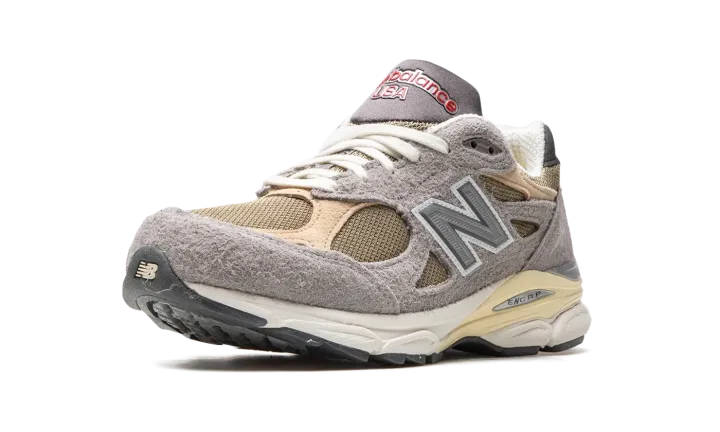 The Teddy Santis x New Balance 990 V3 "Made in the USA" is one of several silhouettes included in the acclaimed footwear and fashion designer's first-ever "Made in the USA" collection with New Balance. The highly anticipated partnership between Santis, who is the founder and lead designer of Aime Leon Dore, was announced in 2021 after Aime Leon Dore and New Balance's popular 550 collaborations helped bring attention to both brands beginning in 2020. Santis is now the head of New Balance's "Made in the USA" footwear program. Here, on the 990 V3, the shoe features hairy grey suede overlays atop an olive green mesh base. Tan leather and suede overlays are found on the forefoot and heel, respectively. A reflective "N" logo is located on both sides of the shoe. A small red "NB" logo is found on the heel and "New Balance" and "USA" branding appear on the grey waffle tongue. The white and cream-colored rubber midsole gives the shoe a vintage look. Release date: April 28, 2022