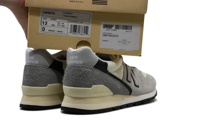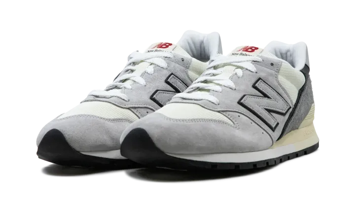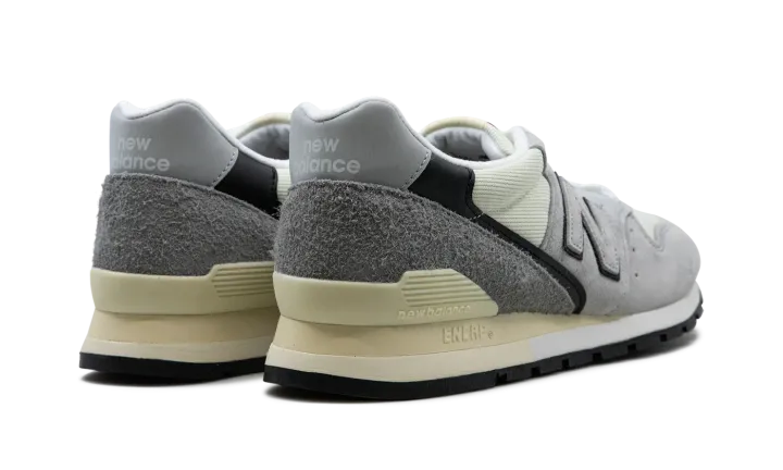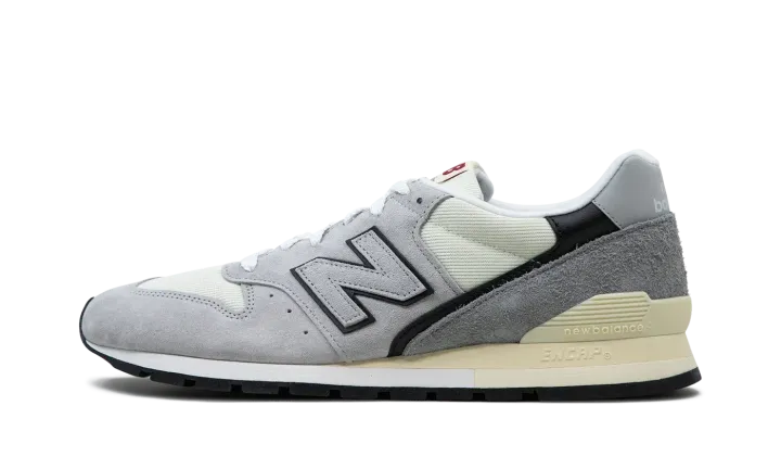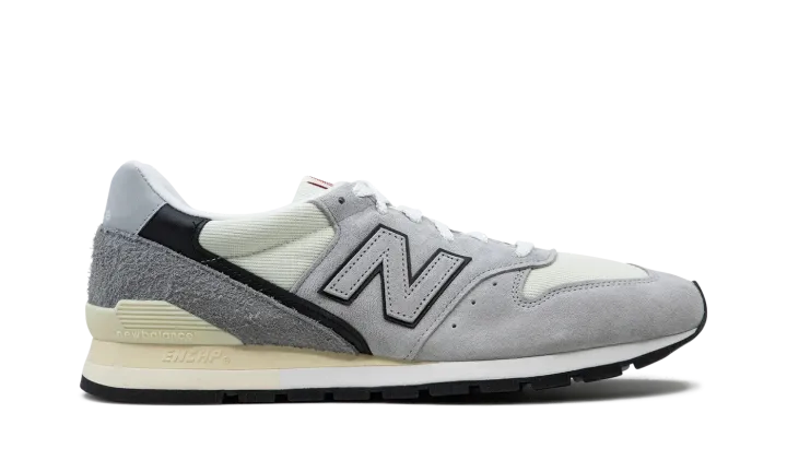 The New Balance 996 "Made in USA - Grey" is a versatile and casual colorway of the retro shoe. The New Balance 996 "Made in USA - Grey" is part of the Boston based footwear company's famed "Made in USA" line headed up by Aimé Leon Dore founder and lead designer Teddy Santis. The shoe features a white canvas base and a grey suede overlay on the midfoot. A slightly darker shade of grey is used on the hairy suede overlay panel on the heel. Classic "N" branding can be found on either side of the shoe, while a black leather overlay appears on the collar and heel. An ENCAP midsole and black outsole complete the look
