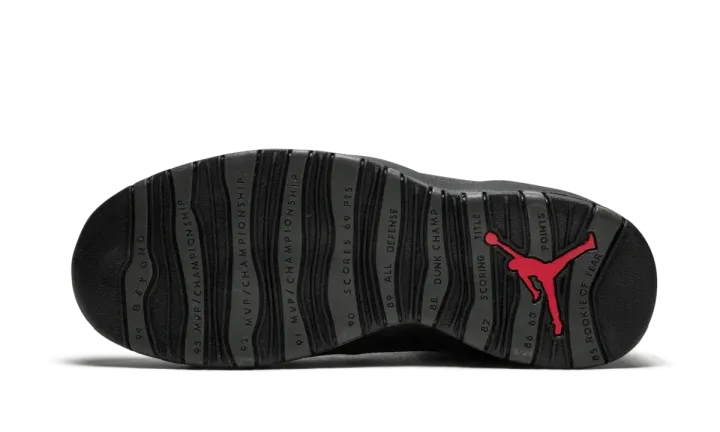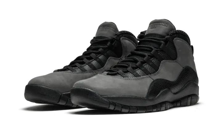 The Air Jordan 10 Retro "Shadow" is one of the most renowned colorways of Michael Jordan's 10th signature shoe. The Air Jordan 10 "Shadow" made a comeback in 2018. The stealthy-looking Jordan has a dark grey nubuck upper that is accented with black details around the mudguard and eyelets. The Air Jordan 10s have a checkerboard lining that adds an appealing pattern. As with all Air Jordan 10s, the outsoles are etched with a list of Michael Jordan's career accomplishments.