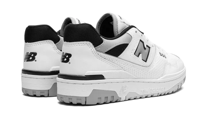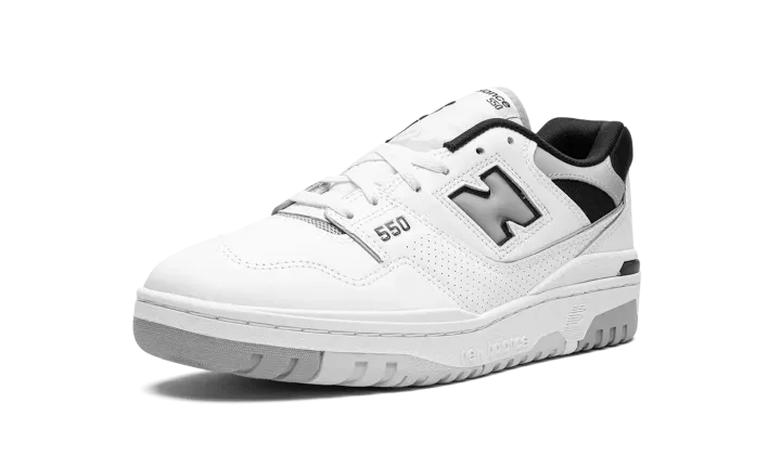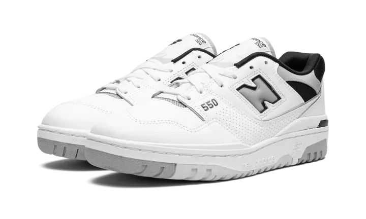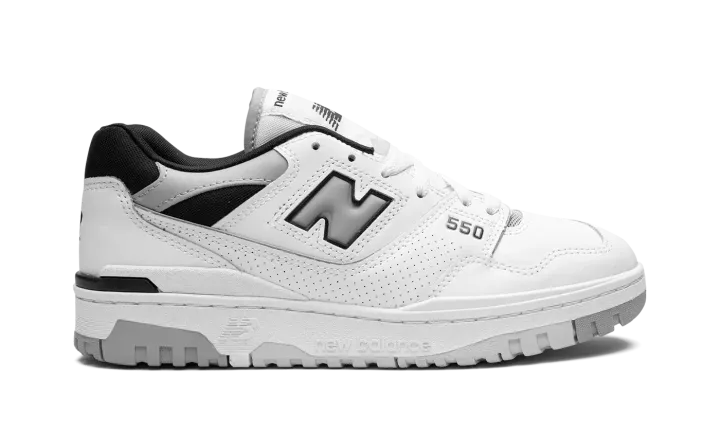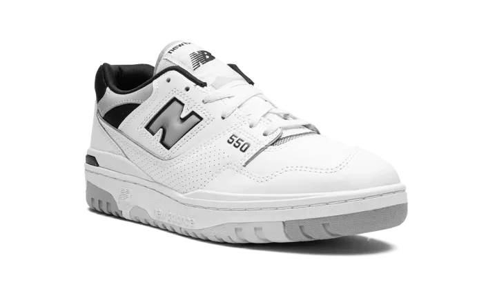 The New Balance 550 "White/Black/Grey" is a versatile colorway of the vintage basketball shoe that can be worn for virtually any occasion. The easy-to-style New Balance 550 in "White/Black/Grey" features a white leather construction with tonal leather overlays. A contrasting grey "N" logo with black trim appears on either side of the shoe. "550" detailing is embroidered on the lateral side of the forefoot and black "NB" branding is found on the heel. Classic "New Balance 550" detailing appears on the tongue tag. A chunky white rubber midsole and orange outsole complete the look. Release date: March 8, 2023