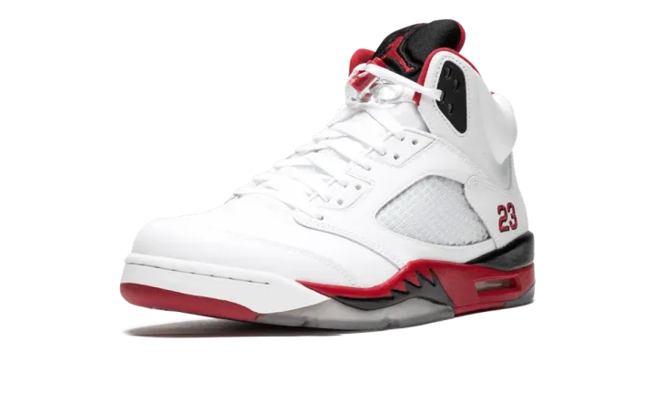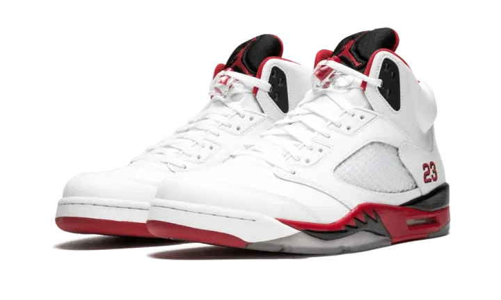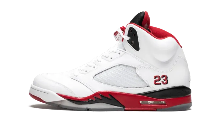 One of Michael Jordan's classic on-court colorways from 1990, this is the "black tongue" Fire Red Air Jordan 5 Retro. This is the 2013 edition of the iconic colorway.