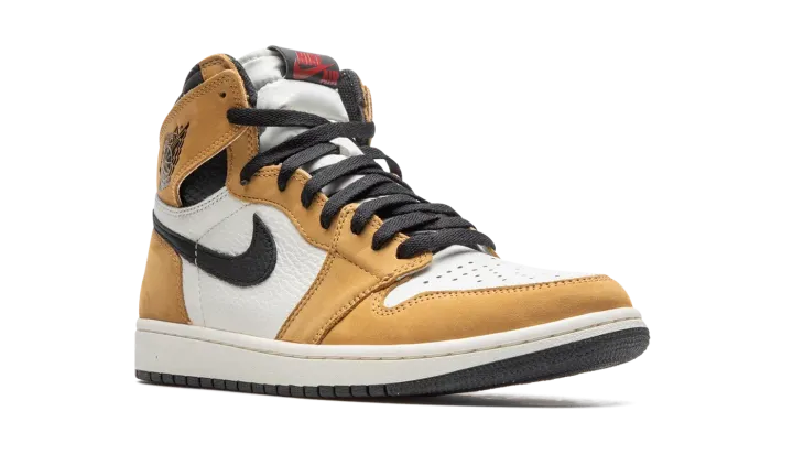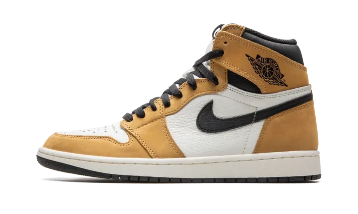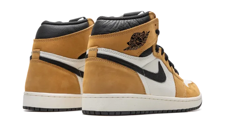 The Air Jordan 1 "Rookie of the Year" is a unique colorway commemorating Michael Jordan's Rookie of the Year honors in 1985. When Jordan won the award after his debut NBA season in 1984-85, the Chicago Bulls star accepted the trophy wearing a tan-colored jacket, which inspires the primary color on this shoe. The construction features a white full-grain leather base with tan nubuck overlays and black accents. This Jordan 1 colorway also has hidden details under the detached ankle panels, including MJ's rookie season statistics and a quote from his acceptance speech. The Air Jordan 1 "Rookie of the Year" released in November 2018.