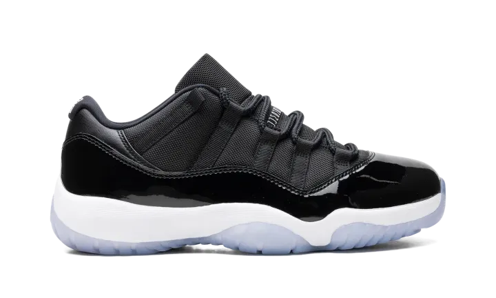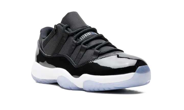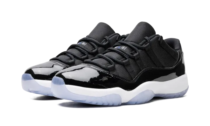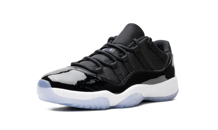 The Air Jordan 11 Low "Space Jam" is the beloved colorway of the retro basketball sneaker that originally appeared on the model's high-top shoe beginning in 2000. The Jordan 11 Low "Space Jam" signals the first time the iconic colorway has appeared on Michael Jordan's eleventh signature shoe in low-top form. Just like the original style, the Jordan 11 Low features a black ballistic mesh construction and shiny black patent leather mudguard. "Jordan Jumpman" detailing is seen on the black mesh tongue. A small Jumpman is seen in white on the heel. Underfoot, the white foam midsole and icy translucent blue rubber outsole complete the look.