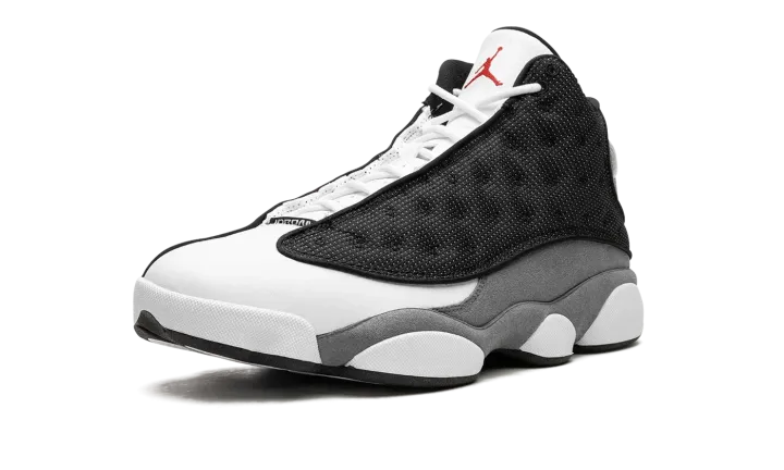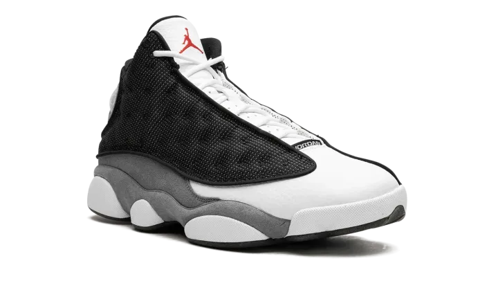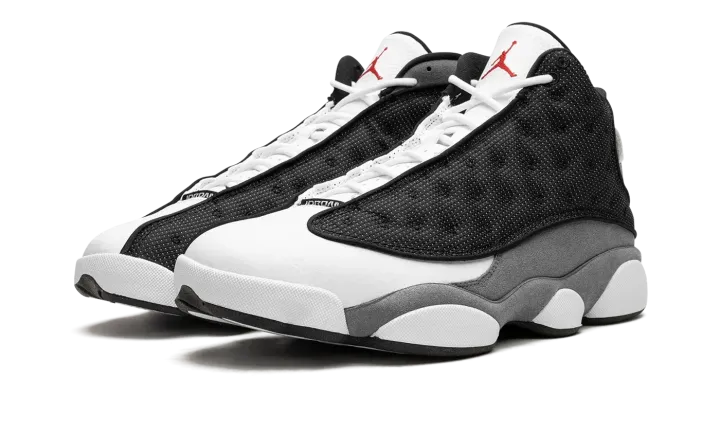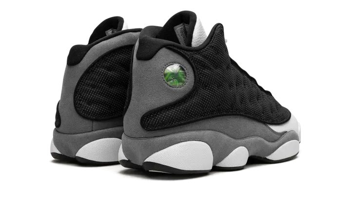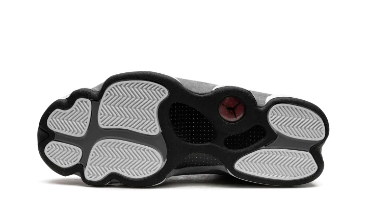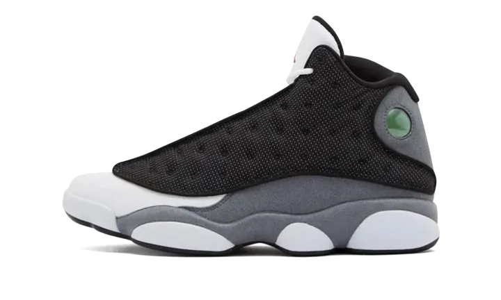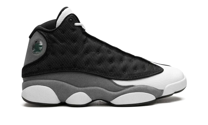 The Air Jordan 13 "Black Flint" is a clean and versatile colorway of the vintage basketball shoe that is loosely inspired by one of the model's original releases. The shoe in question is the Jordan 13 "Flint," which was originally released in 1998 and one of the most popular colorways of Michael Jordan's thirteenth signature shoe. On the "Black Flint," the shoe features the same color block as its predecessor, albeit in different colors. The design is complete with a black mesh upper that's contrasted with grey suede overlays and a white leather toe. A holographic jewel appears on the lateral side of the collar. Classic Jumpman branding is found on the toe. Black rubber pods appear on the outsole mirroring that of a panther's paw, which the original Air Jordan 13 was inspired by. Release date: April 22, 2023