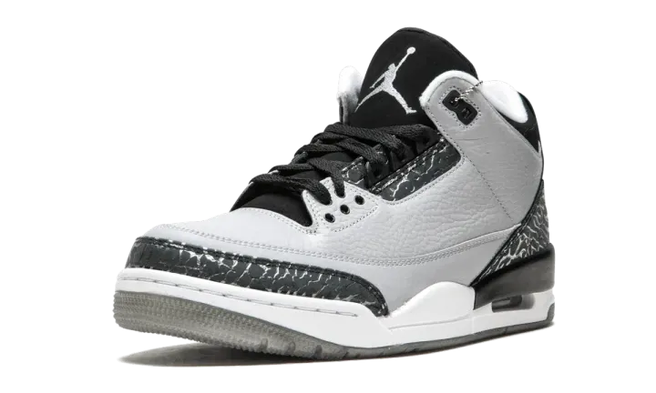 The Air Jordan 3 Retro got dressed in Wolf Grey for this 2014 release of one of the most beloved Air Jordan silhouettes. The grey tumbled leather upper is complimented by metallic silver elephant print and black accents for a balance of neutral tones with a distinct flash.