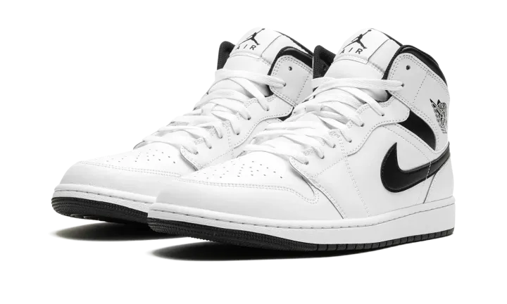 The Air Jordan 1 Mid "White/Black," also known as the "Stormtrooper" colorway, is a simple and versatile white-and-black rendition of the casual shoe. The Jordan 1 Mid "White/Black" features a white leather construction with black leather Swooshes on the sides of the shoe and more black accents around the ankle. Classic Jumpman and "Air" branding are located on the tongue tag. A white midsole and black outsole put the finishing touches on the teo-tone design. Release date: December 12, 2023