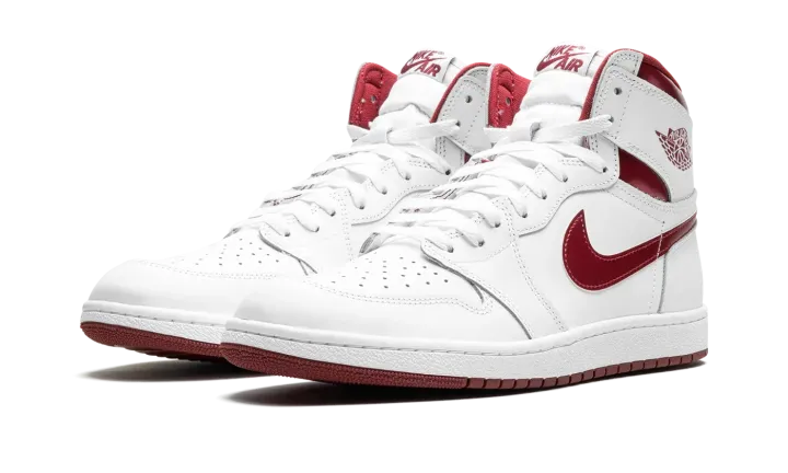 The Air Jordan 1 High '85 "Metallic Burgundy" is the modern re-release of an original colorway of Michael Jordan's first signature shoe that debuted in 1985. The "Metallic Burgundy" was an original colorway of the retro basketball shoe that was part of the "Metallic Pack" of metallic-detailed colorways. This marks the first time the "Metallic Burgundy" has been released since the original version from '85. True to the original, the modern colorway has a white leather upper with tonal leather overlays. Metallic Burgundy detailing is featured on the Swoosh branding on the sides, on the "Wings" on the collar, the "Nike Air" detailing on the tongue tag, and on the laces. A white rubber midsole and burgundy rubber outsole complete the look. Release date: February 16, 2024