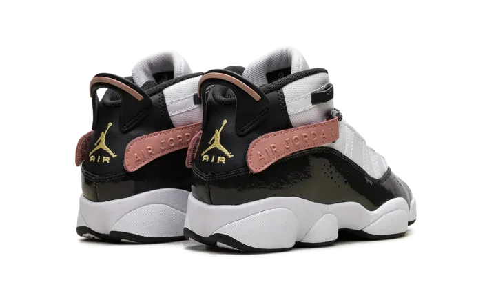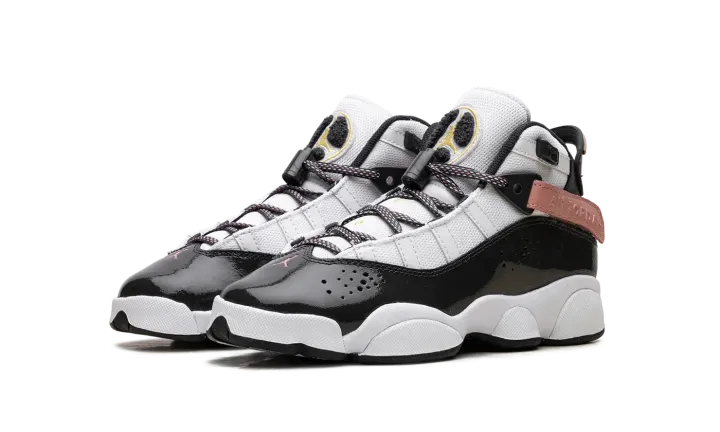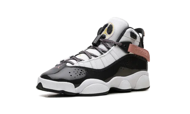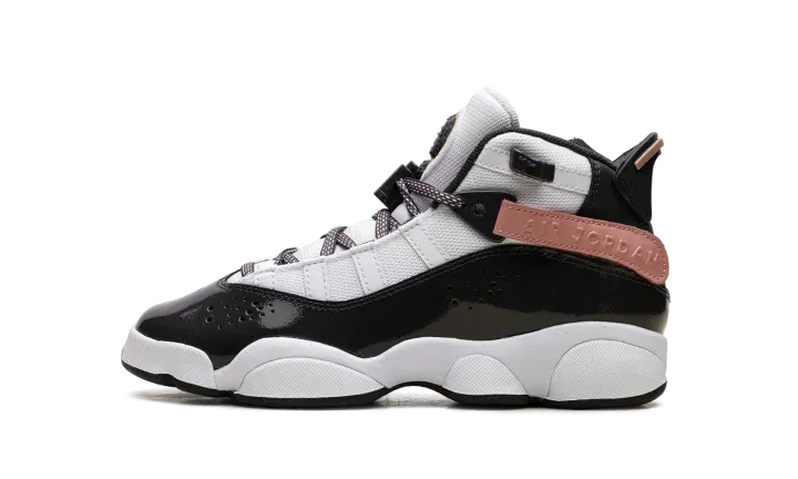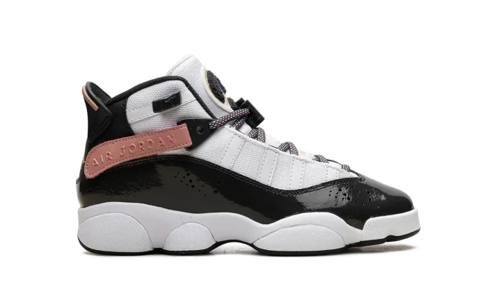 Capture the greatest hits of a legend with the Jordan 6 Rings GS 'White/Red Stardust/Vapor Green/Anthracite' sneaker! This Grade School hybrid model celebrates all six of MJ's championship rings by cleverly combining design elements from the six shoes he wore in those finals. It features a durable leather and synthetic upper, plush Phylon midsole with Zoom Air cushioning, and vibrant accents of Red Stardust and Vapor Green. Give young athletes an iconic piece of basketball history built for comfort and lasting traction.