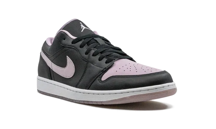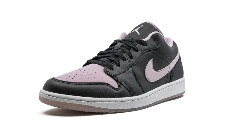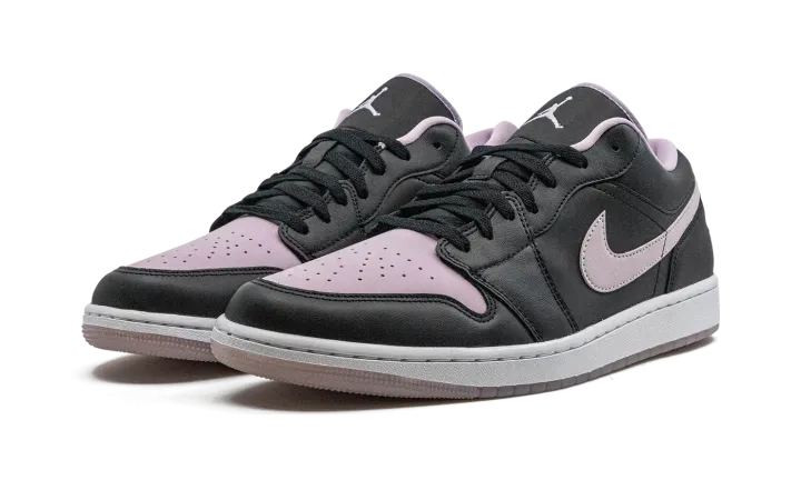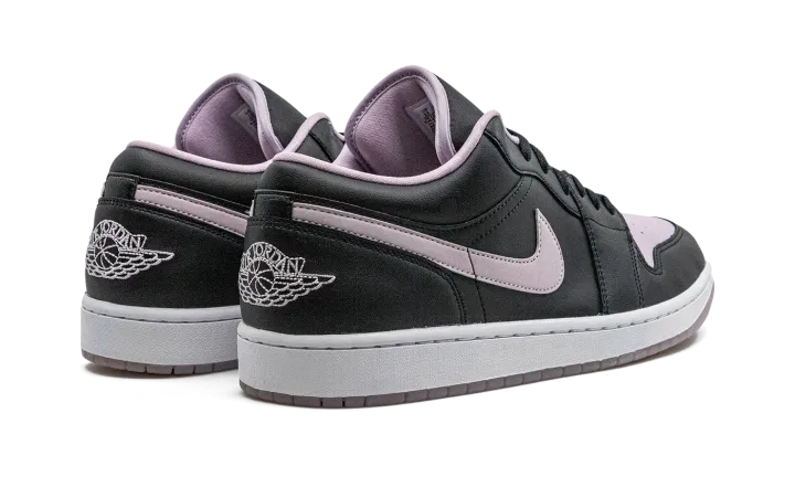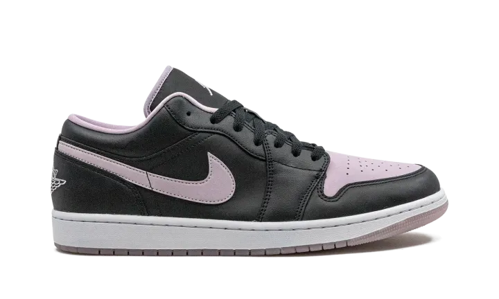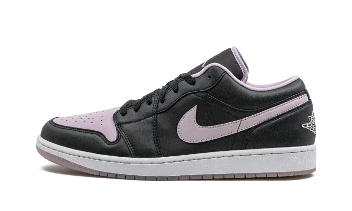 The Air Jordan 1 Low "Black/Iced Lilac" is a colorway of the low-top retro basketball shoe with a two-tone color block. More specifically, the "Black/Iced Lilac" features an Iced Lilac perforated leather toe box and leather Swoosh against a black leather upper. The eye-pleasing lilac hue is also found on the "Wings" branding embroidered on the heel, on the Jumpman on the tongue, and on the inner lining. A white rubber midsole and Iced Lilac rubber outsole complete the look.