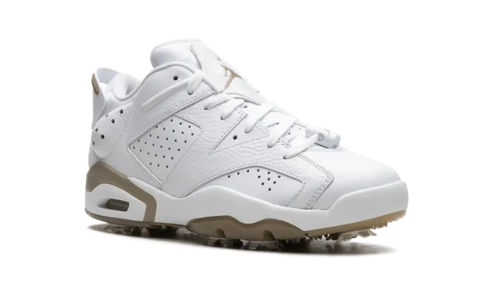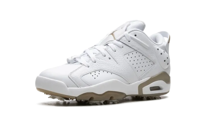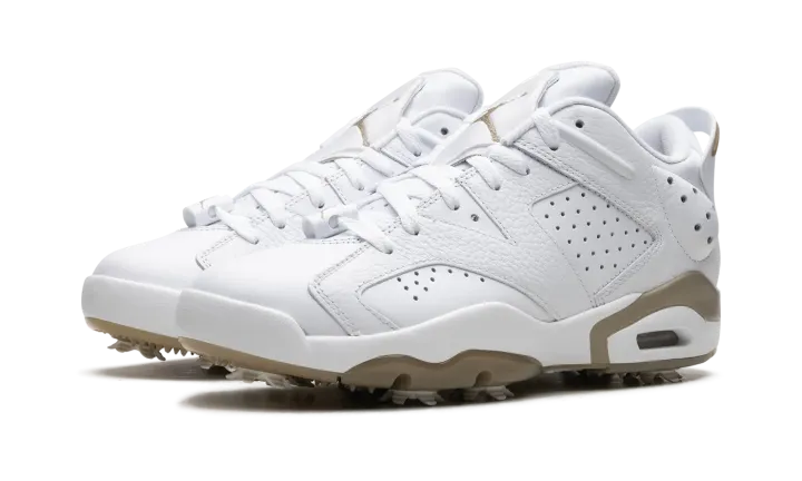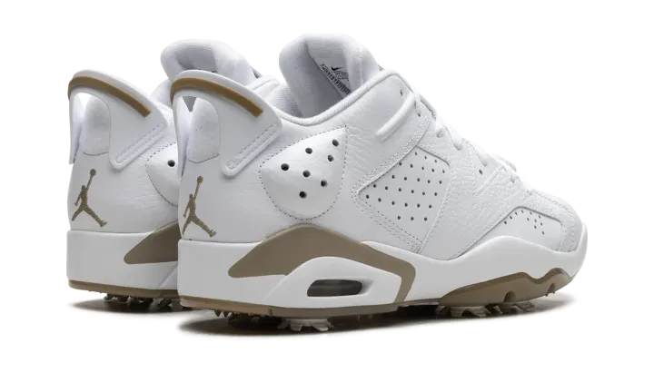 The Air Jordan 6 Low Golf "White/Khaki" is the golf version of the retro basketball shoe in a summer-ready colorway. The Jordan 6 Low Golf is one of multiple Air Jordans that have been redesigned by Jordan Brand for the fairway. Here, the colorway features a white leather construction with perforations on either side. A Khaki Jumpman is embroidered on the tongue and heel. Additional Khaki accenting can be found on the spoiler on the heel and on the midsole walls. Underfoot, the treaded outsole provides traction on a golf course. Release date: July 25, 2023