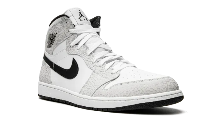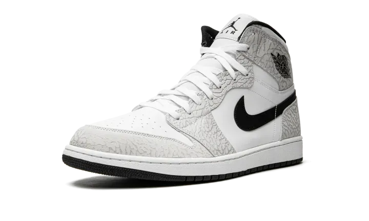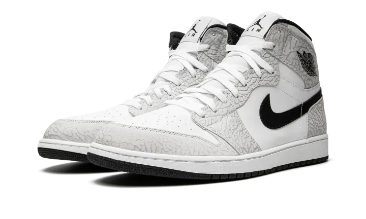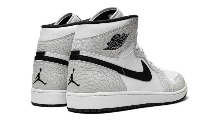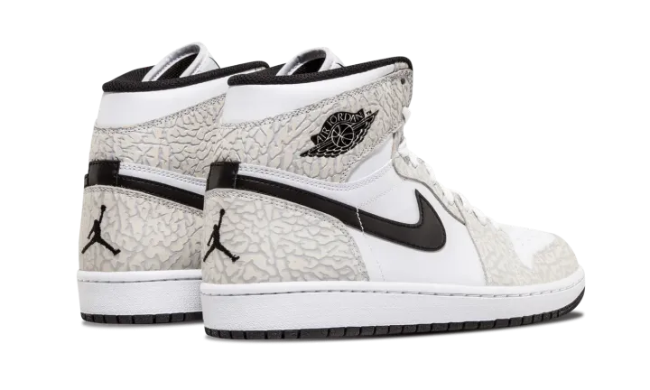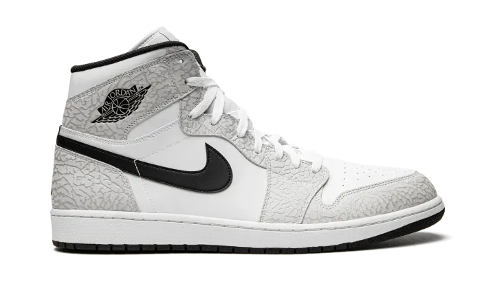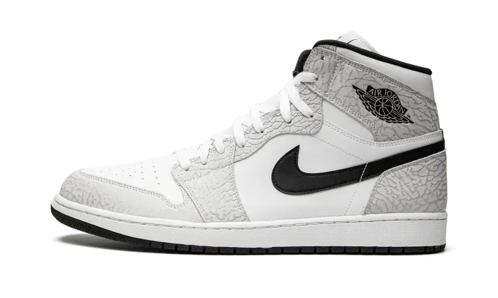 This "White Elephant" Air Jordan 1 High features the iconic silhouette in a white leather upper with matching white elephant print paneling. Black accents finish off the clean look.