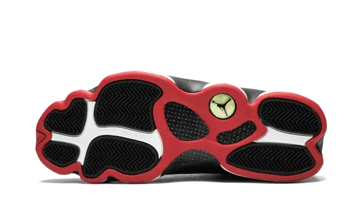The Air Jordan 13 Low "Bred" is an original-inspired look for the low-top version of Michael Jordan's thirteenth signature shoe. Released in 2015, the "Bred" Jordan 13 Low is comparable to the original "Playoffs" colorway of the standard mid-top Air Jordan 13. Both share a black tumbled leather upper with red and black accents for a classic Chicago Bulls color scheme. The "Bred" 13 Low also includes a soft suede panel around the ankle. A golden metal Jumpman logo on each heel completes the clean design. The Air Jordan 13 Low "Bred" released on June 13, 2015.