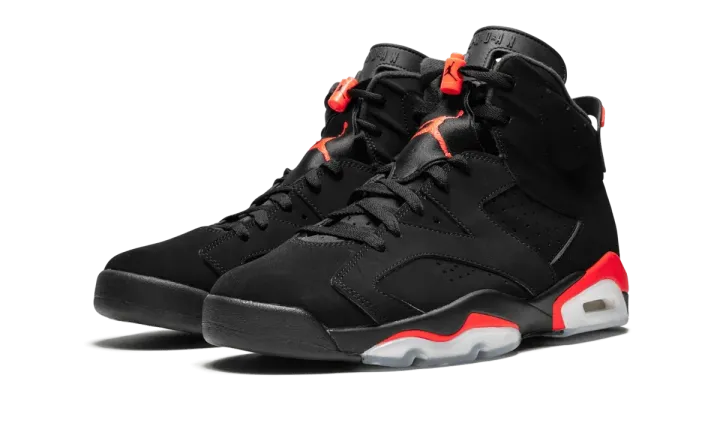 The Air Jordan 6 Retro "Black/Infrared 2019" is the 2019 release of this iconic Michael Jordan signature shoe. One of the most beloved Air Jordan models and colorways of all time, the Air Jordan 6 "Black/Infrared" features a black nubuck upper with bright neon red accents and icy clear portions of the outsole. This 2019 retro brings back the original Nike Air branding embroidered on the heel (previous retros of the Jordan 6 had a Jumpman logo on the heel). The 2019 "remastered" retro also features a shade of Infrared that is more accurate to the original 1991 release. This 2019 Air Jordan 6 "Black/Infrared" released during NBA All-Star weekend on February 16 and instantly became one of the biggest sneakers of the entire year.