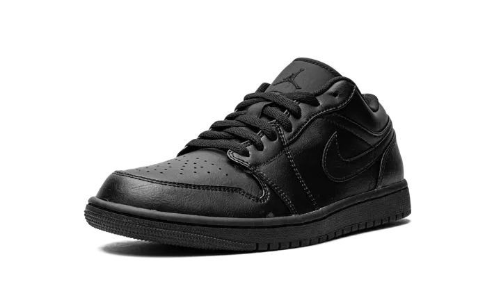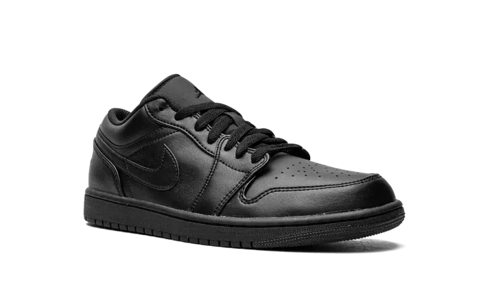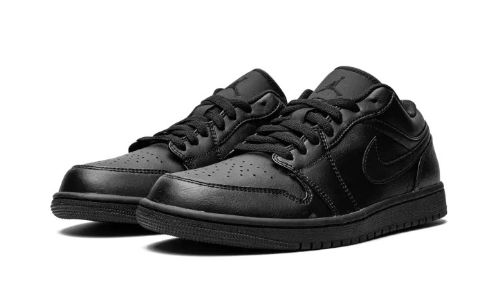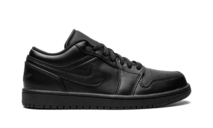 The Air Jordan 1 Low "Triple Black" is a monochromatic black colorway of the popular low-top sneaker. Certainly one of the most versatile shoes in Jordan Brand's footwear line, the "Triple Black" edition of the Jordan 1 Low features an all-black-everything design, beginning with a black leather upper. The perforated toe, as well as the mid-panel, overlays, and Swoosh branding on the sides, all appear in black leather. A tonal "Wings" logo is embroidered on the heel. A black Jumpman is stitched onto the black leather tongue. Underfoot, a black rubber sole completes the look.