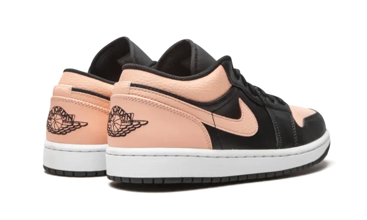 The Air Jordan 1 Low "Crimson Tint" is a stylish look for the low-top version of Michael Jordan's first signature shoe. Executed in a two-tone black and Crimson Tint color block, the "Crimson Tint" is a summer-ready colorway for the iconic silhouette. The forefoot, eyelets, and mid-panel feature a black leather construction. Jordan Brand places a Crimson Tint leather Swoosh on either side and Crimson Tint leather on the perforated toe, collar, and heel. A black embroidered "Wings" logo is stitched onto the back of the shoe and a Crimson Tint Jumpman appears on the black nylon tongue tag. A simple white rubber midsole and contrasting black outsole round out the look.