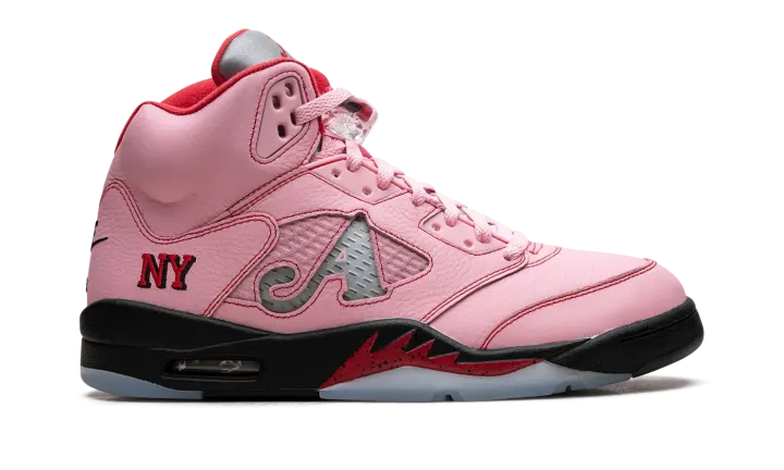 Lace up a truly special collaboration with the Air Jordan 5 "Awake NY Arctic Pink." This remarkable sneaker, a result of the Awake NY partnership, features a vibrant pink design with subtle, distinctive details. Experience superior cushioning and a bold aesthetic, perfect for making a statement with an exclusive and colorful edge.