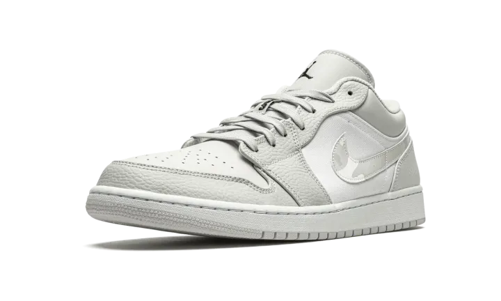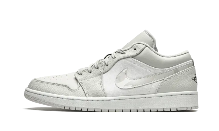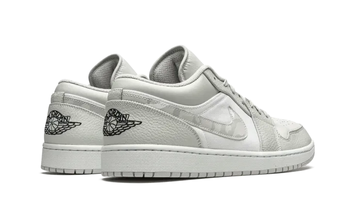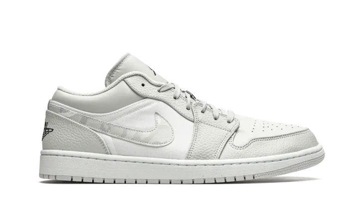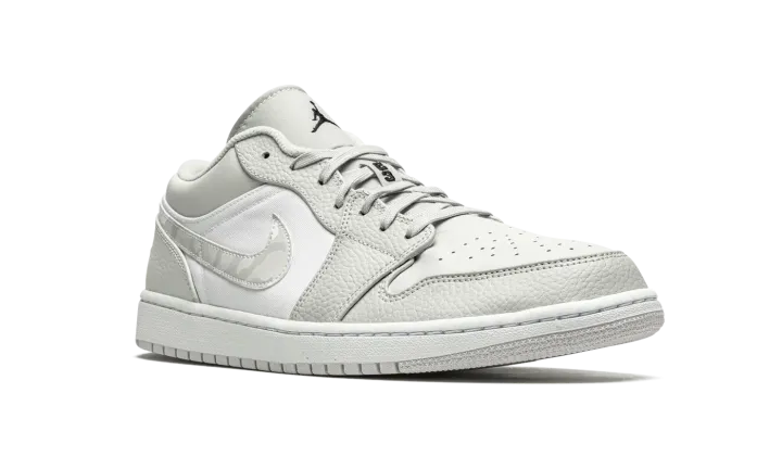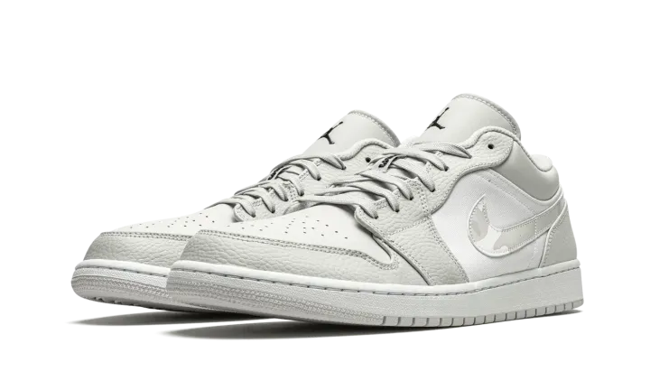 The Air Jordan 1 Low "White Camo" is a versatile and desirable low-top version of Michael Jordan's signature shoe with a subtle camouflage pattern. This refined look for the Jordan 1 Low features light grey tumbled leather overlays on the forefoot and eyelets. Contrasting white perforated leather appears on the toe and a smooth variant of the material covers the mid-panel. Branding, like the "White Camo" leather Swoosh located on either side, as well as the mini black Jumpman embroidery the tongue and "Wings" emblem on the heel, add classic styling to the Air Jordan 1.
