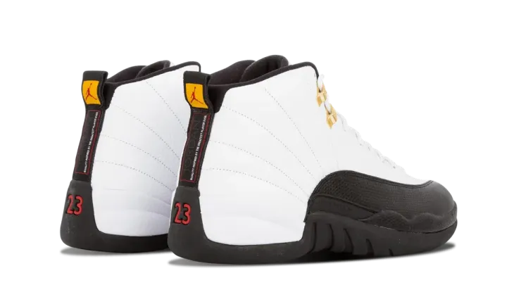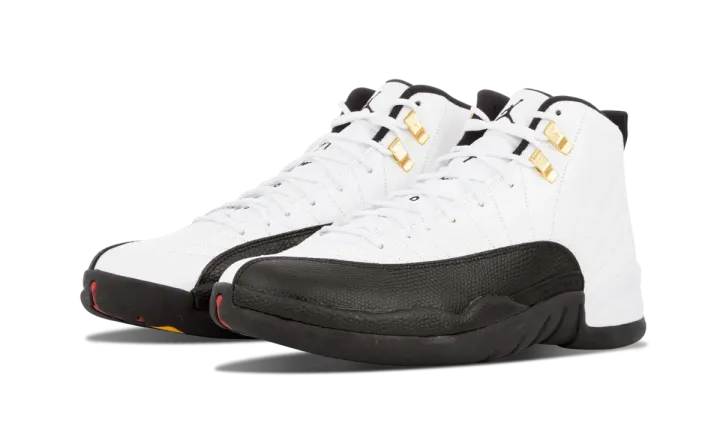 An original colorway of the Air Jordan 12 from 1997, the "Taxi" version in a predominantly white leather upper with the signature toe panel in black is perhaps the most iconic version of the twelfth Air Jordan.