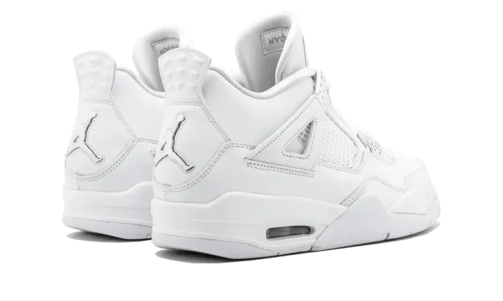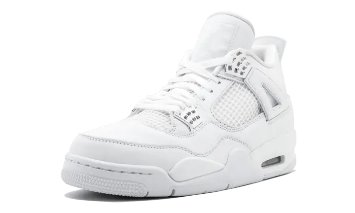 Talk about pristine! Jordan Brand reintroduces fans to the Air Jordan 4 in the icy all-white "Pure Money" rendition. Originally released in 2005, and again in 2010 under the 25th anniversary moniker, this colorway further proves that simple is often better. Released just in time for spring/summer 2017, the AJ 4 sports a clean leather upper in white, with mesh netting and Air Jordan branding on the tongue to match. Metallic Silver appears on the lace eyelets, along with a bold Jumpman logo on the heel to complete the look. This listing is in adult sizes.