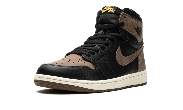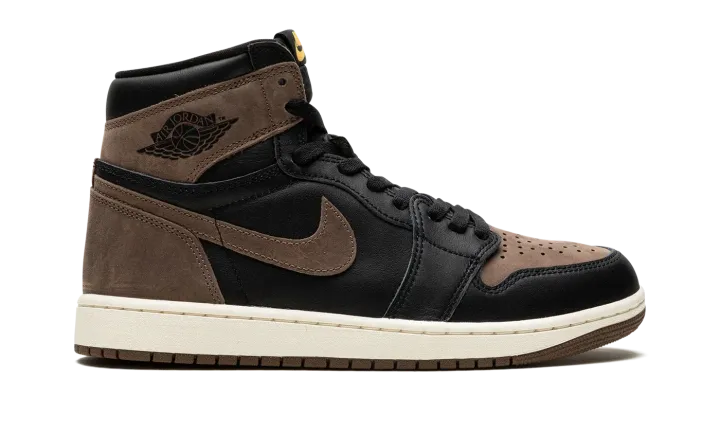 The Air Jordan 1 High OG "Palomino" is a premium lifestyle look for Michael Jordan's first signature sneaker. The iconic silhouette is presented in a classic and familiar color block, this time featuring a muted and versatile combination of black and dark brown. The brown, or "Palomino," shade is found on the soft nubuck overlays at the heel, toe, and side Swooshes. The rest of the upper is constructed in black leather. A hit of gold is seen on the "Nike Air" tongue tag logo, and an off-white midsole and brown outsole complete the clean look of this Jordan 1 High. Release date: September 2, 2023