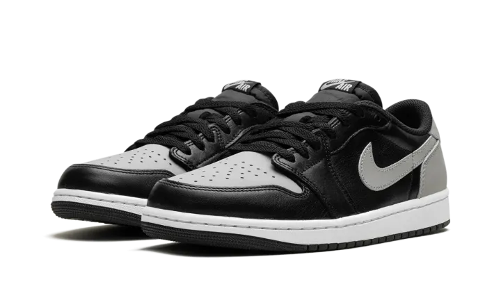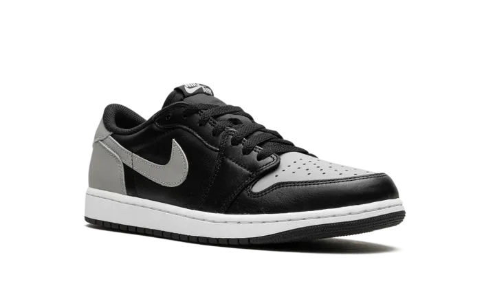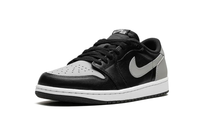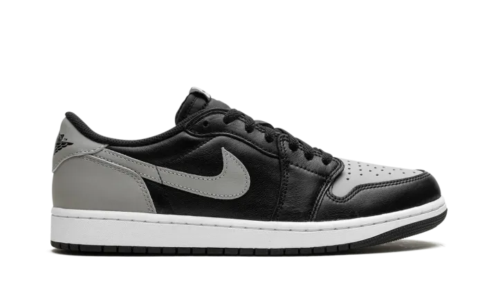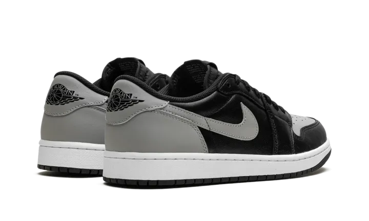 The Air Jordan 1 Low OG "Shadow" is a classic colorway of the retro basketball shoe that debuted on the original Jordan 1 in 1985. Appearing on the Air Jordan 1 High in '85, the "Shadow" colorway was released on the Jordan 1 Low OG model in 2015 and again in 2024. The modern version of the style is similar to the original "Shadow" colorway from back in the day. The upper features a Medium Grey leather base contrasted with black leather overlays. A Medium Grey leather Swoosh appears on the mid-panel and a black "Wings" logo is found on the heel. Classic "Nike Air" detailing can be seen on the tongue tag. A white midsole and black outsole complete the look. Release date: May 10, 2024
