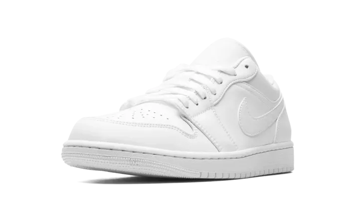 The Air Jordan 1 Low "Triple White" is a crisp, monochromatic white colorway of the classic low-top sneaker. The design features a white leather construction with tonal leather overlays and Swoosh branding on the sides. A white embroidered "Wings" logo is found on the heel and a white Jumpman is stitched on the tonal leather tongue. A white rubber sole completes the all-white-everything look. Release date: September 1, 2022