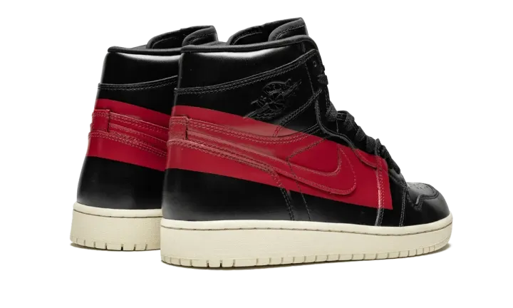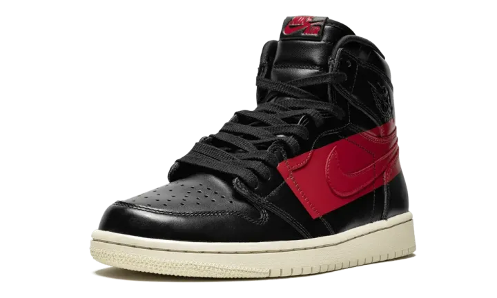 The Air Jordan 1 Retro High OG Defiant "Couture" is a premium edition of the Air Jordan 1 inspired by high-fashion. Also calling to mind the "Banned" theme associated with the original black and red Jordan 1, this colorway features a semi-glossy black leather upper with large red stripes painted across the upper. More red is found on the "Nike Air" tongue tag, while the outsole appears in a cream shade for a vintage look. The limited edition Air Jordan 1 Defiant "Couture" released on February 23, 2019 and is now yet another highly sought-after colorway of the iconic model.