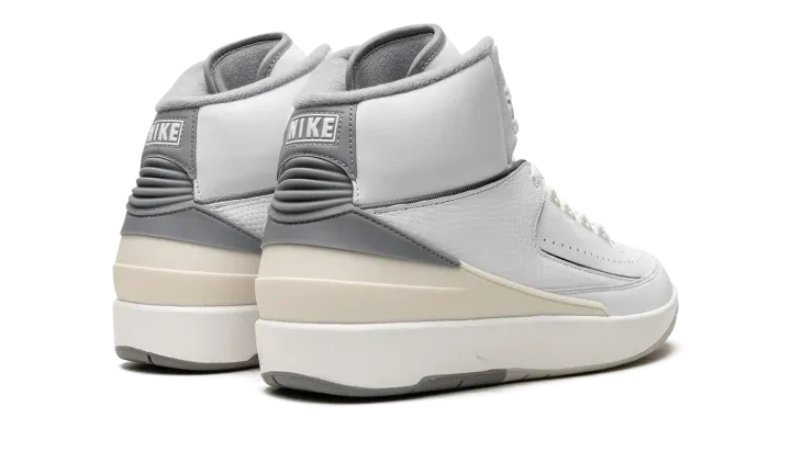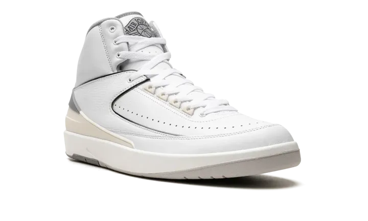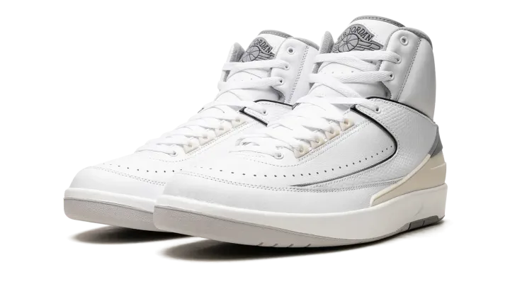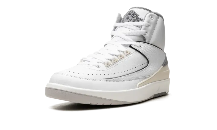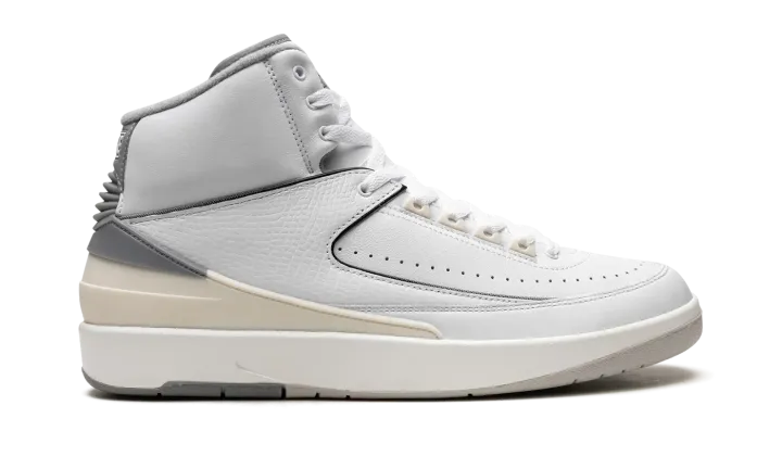 The Air Jordan 2 "Cement Grey" is a clean and classic colorway of the retro basketball shoe. The versatile design features a white leather construction with contrasting Neutral Grey accents on the piping and liner, and on the "Wings" branding on the tongue. The grey hue also appears on the heel counter and on the rubber outsole that's paired with the white midsole. Release date: May 6, 2023