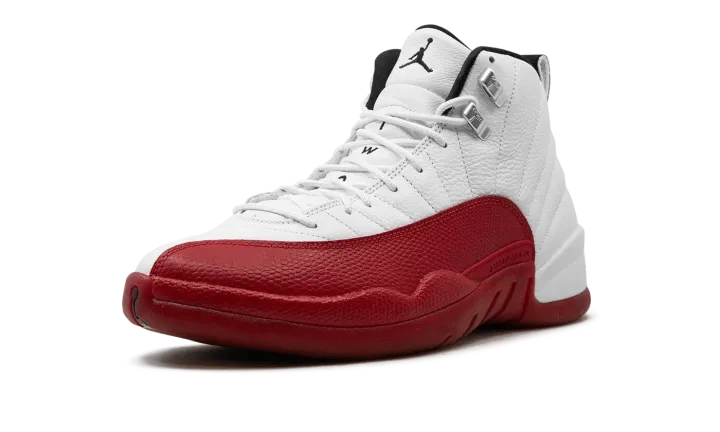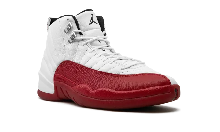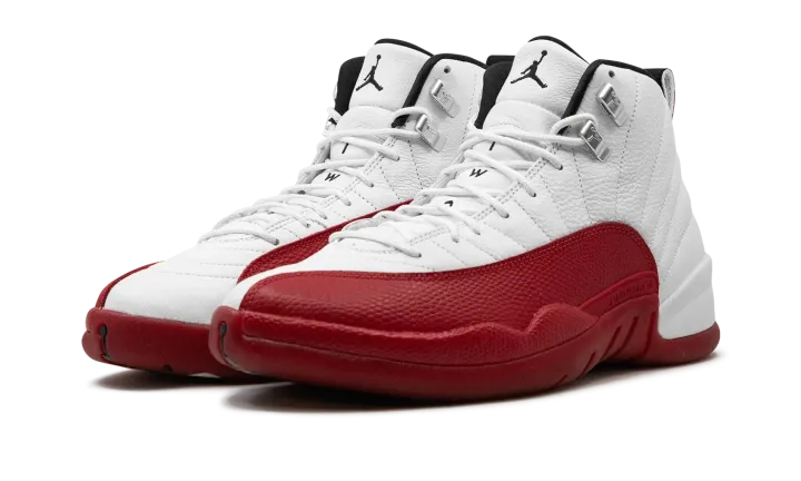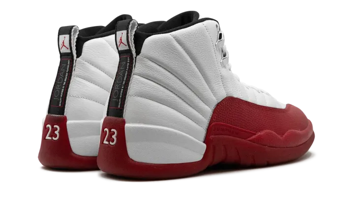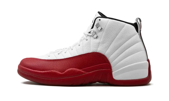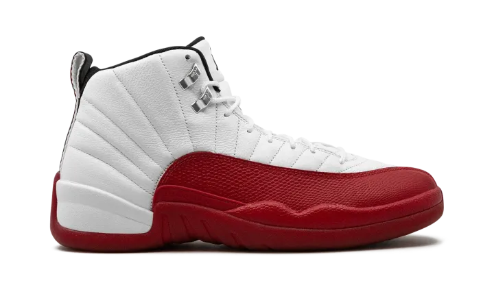 The Air Jordan 12 "Cherry" is the re-release of an original colorway of Michael Jordan's twelfth signature shoe that debuted in 1997. Worn by Jordan with the Chicago Bulls throughout the NBA's 1996-97 regular season, the Jordan 12 "Cherry" is one of the most popular and iconic Jordan models of all time. The 2023 version of the shoe remains faithful to the original style from '97. It features a white leather construction with a Varsity Red textured mudguard/toe panel that spills onto the midsole. Silver eyelets and black Jumpman and "Two 3" detailing are found on the collar and tongue, respectively. Release date: October 28, 2023
