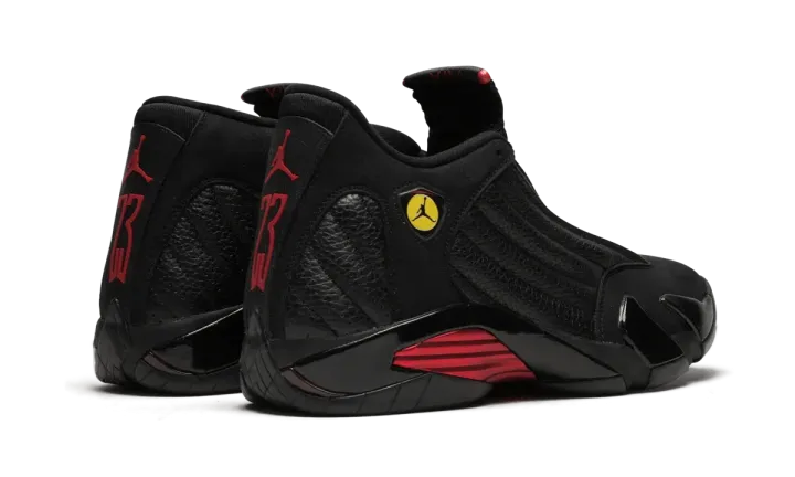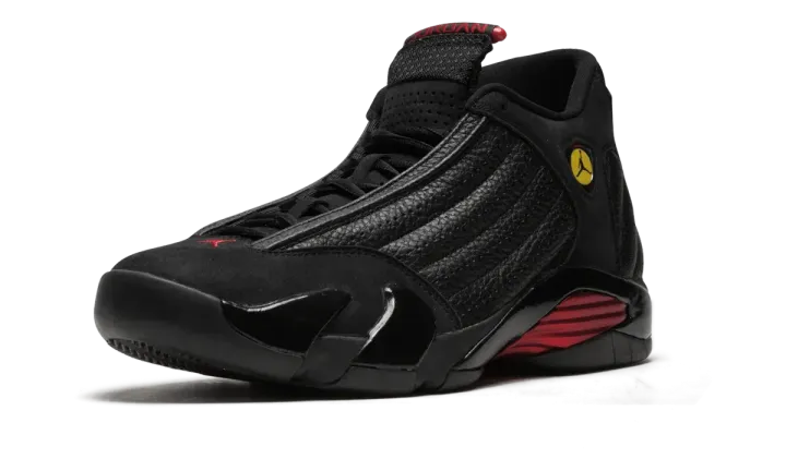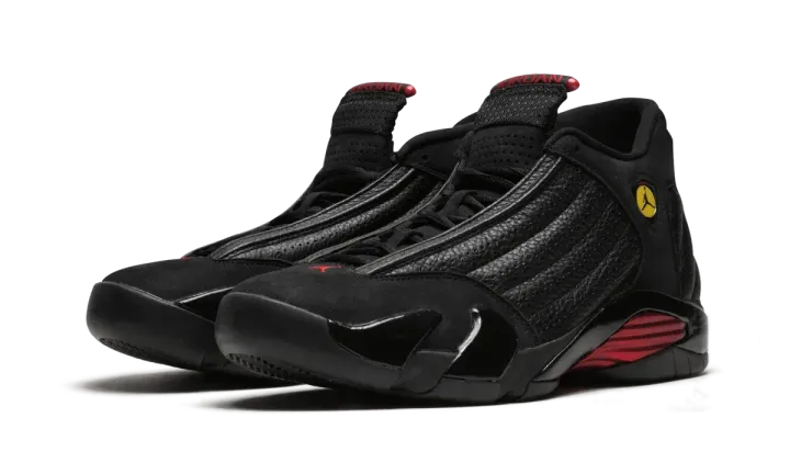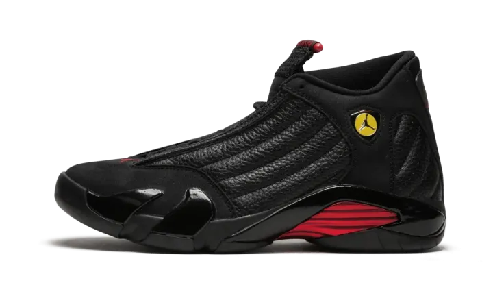 In 1998 Michael Jordan ended his career with the Chicago Bulls in poetic fashion by sinking a championship-winning shot during the NBA Finals against the Utah Jazz. On his feet were the new Air Jordan 14s in a black and red colorway. The sneakers have since become known as the Air Jordan 14 "Last Shot" and were brought back in 2018 as part of Nike's Art of a Champion collection celebrating great playoff moments through the years.