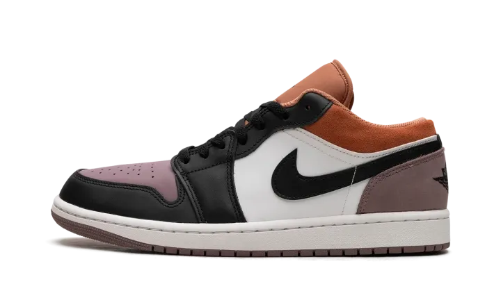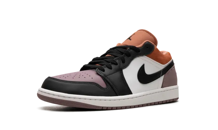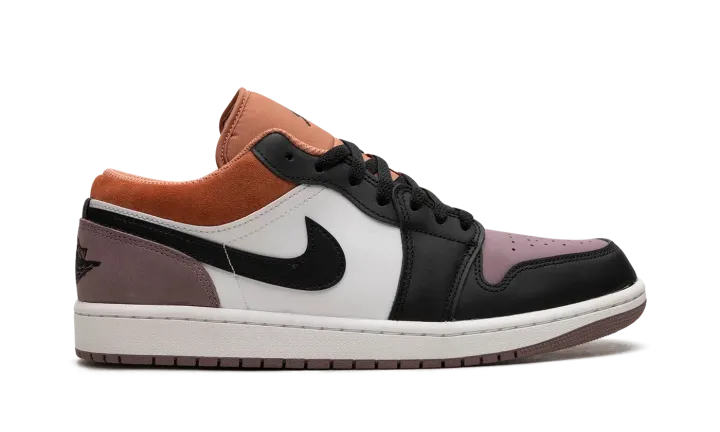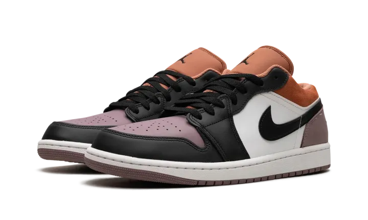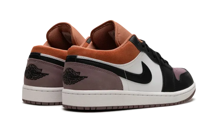 The Air Jordan 1 Low SE "Sky J Mauve" is a colorway of the retro basketball shoe designed with a premium arrangement of materials. The shoe's eye-catching design features Sky J Mauve leather on the perforated toe, and Sky J Mauve suede on the heel. The toe cap, forefoot, eyelets, and Swoosh are designed in black leather, while the collar appears in Sky J Orange. A black "Wings" logo is embroidered on the heel and a black Jumpman can be found on the tongue. Underfoot, a white midsole and Sky J Mauve outsole complete the look. Release date: November 13, 2023