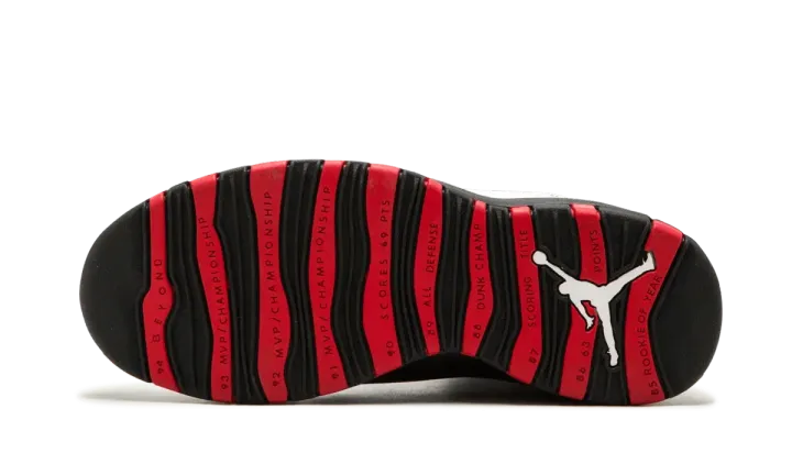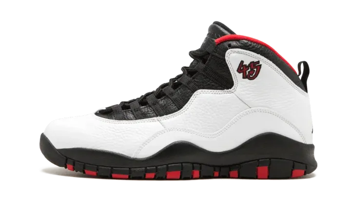 The first shoe Michael Jordan wore after his return to the NBA after his brief retirement, this is the Air Jordan 10 in its "Chicago" color scheme. Complete with his return uniform number 45 on the heels, this "Double Nickel" version released in 2015 is inspired by his comeback 55-point performance at Madison Square Garden against the Knicks on March 28, 1995.