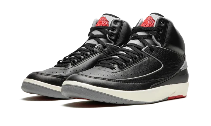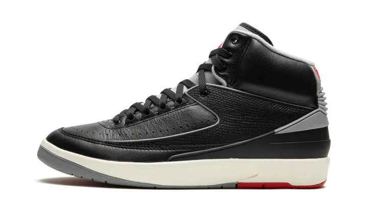 The Air Jordan 2 "Black/Cement" is a colorway of Michael Jordan's second signature shoe inspired by a legendary Air Jordan style. The shoe we're referring to is the Air Jordan 3 "Black Cement," one of the most iconic sneakers of all time. The "Black Cement" Jordan 2 mimics the Jordan 3 of the same nickname's look with black, grey, and red detailing. More specifically, the shoe has a black leather construction with contrasting Cement Grey accents on the heel, tongue, and inner lining. A red "Wings" logo appears on the tongue. Underfoot, the white midsole is paired with a red and grey rubber outsole. Release date: September 23, 2023
