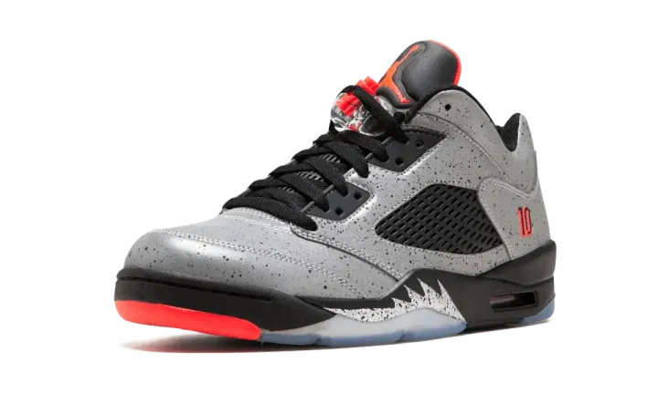 In 2016 Jordan Brand collaborated with Neymar to create the soccer superstar's very own colorway of the Air Jordan 5. The flashy look features a fully reflective silver upper covered with speckles while black and Infrared add the accents.