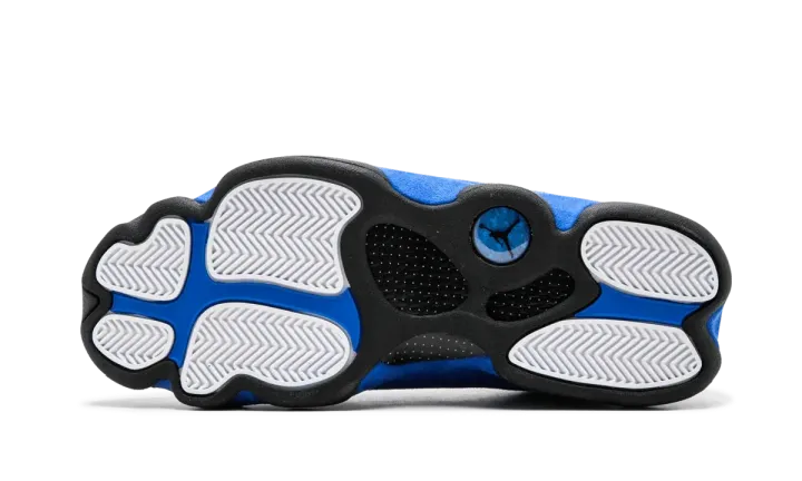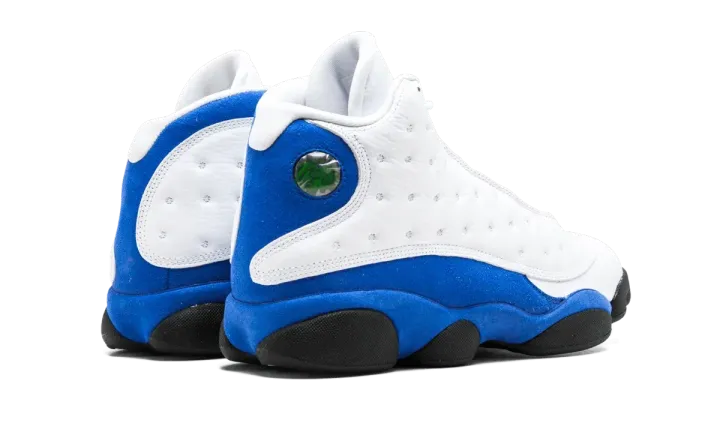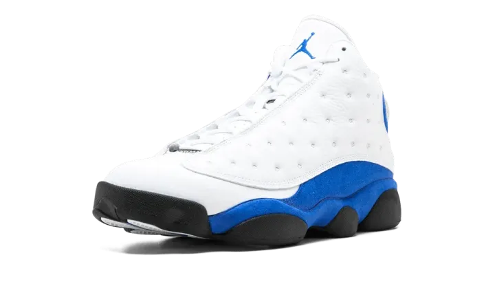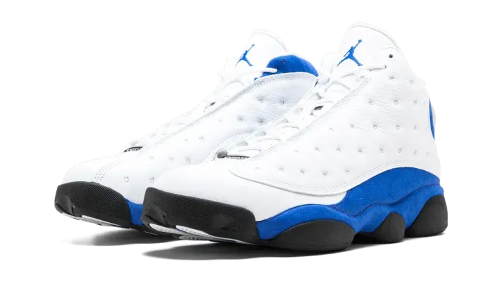 This "Hyper Royal" colorway of the Air Jordan 13 was released early in 2018. It wasn't an entirely new edition, however. An Air Jordan 13 with a white leather and royal blue suede upper was originally created in the early 2000's as a special player edition for former NBA player and Jordan Brand team member Quentin Richardson. That PE was a coveted rarity for years, and now more Air Jordan fans can have a chance to own their own version with the clean Air Jordan 13 "Hyper Royal."