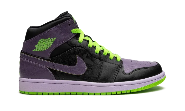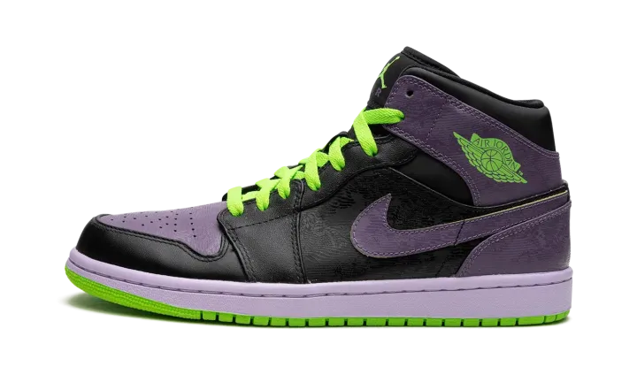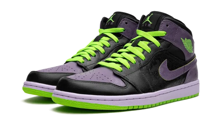 Due to its similarities in color to the famous foe of Batman, this Air Jordan 1 High in black, green, and purple quickly picked up the "Joker" nickname.