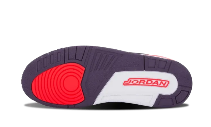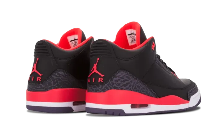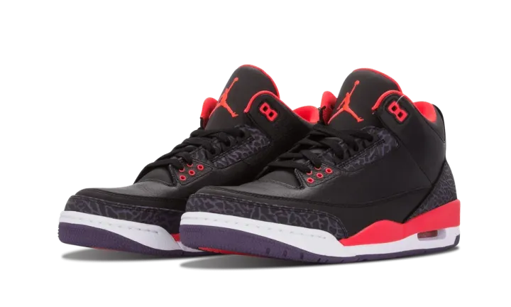 An all new colorway released in 2013, this Air Jordan 3 features a bold look in black leather with eye-popping Bright Crimson and Canyon Purple accents. A bit slept on when it originally dropped, the colorway is now sought out by many that missed out.