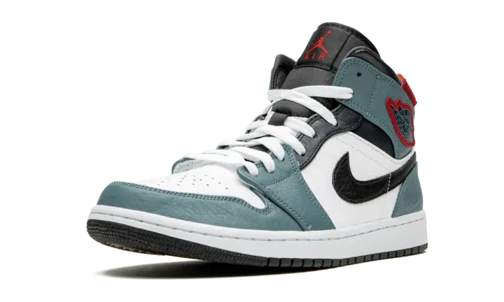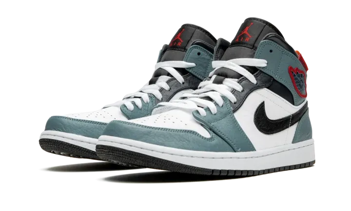 The Facetasm x Air Jordan 1 Mid "Fearless" is a special collaboration between the avant-garde Japanese fashion label and Jordan Brand. Facetasm's appreciation for distinct tailoring and colors definitely shines through on this Jordan 1 Mid. Premium light blue leather overlays on the forefoot, ankle collar, and heel pop against the stark white base of the mid-panel and perforated toe. A navy leather Swoosh covers the mid-panel while a red accented Wings logo appears on the collar. Facetasm branding is located slightly higher up on the collar while a pronounced red heel tab offers a unique look not commonly seen on Air Jordan 1 models. The design is finished off with a subtle red Jumpman logo on the midsole. The Facetasm x Air Jordan 1 Mid "Fearless' was released on November 22, 2019.