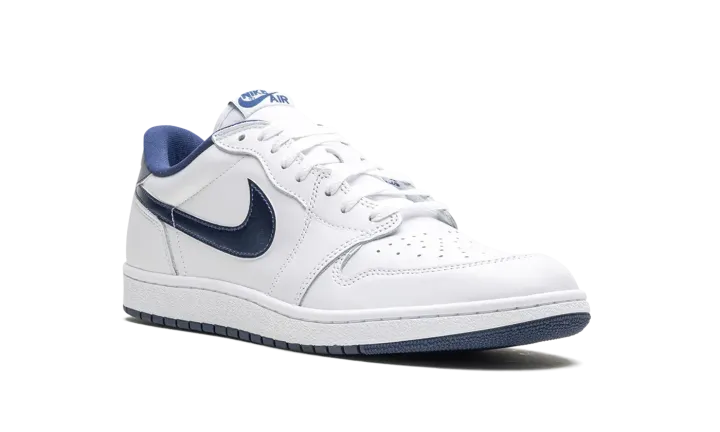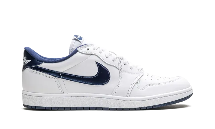 The Air Jordan 1 Low '85 "Metallic Navy" is the remastered edition of an original colorway of Michael Jordan's first signature shoe in low-top form. The Jordan 1 Low '85 is a premium reissue of the Jordan 1 Low, designed with special attention to the details of the original 1985 release. This "Metallic Navy" colorway is one of the original—and very rare—colorways of the Jordan 1 Low from 1985. The modern "Metallic Navy" features a Summit White leather construction with Metallic Navy leather Swoosh branding on the sides. A classic "Wings" logo is found on the Metallic Navy heel tab, and old school "Nike Air" and Swoosh branding appears on the tongue tag. A white midsole and navy outsole complete the OG look. Release date: March 2024