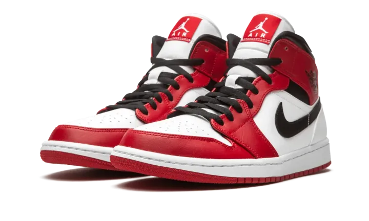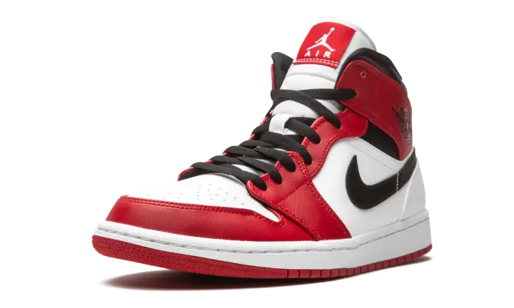 The Air Jordan 1 Mid "Chicago 2020" is yet another desirable "OG" inspired colorway of Michael Jordan's first signature model in modified mid-top height. The Jordan 1 Mid is entrenched as a popular variant of the legendary silhouette as Jordan Brand shows no signs of slowing down its pace of producing mid-tops in classic colorways such as this "Chicago" look. White leather forms the base of the upper, appearing on the perforated toe, mid-panel, and heel. Black leather Swoosh detailing graces each side and black "Wings" branding can be found on the fiery red leather collar. Additional red leather overlays appear on the forefoot, eyelets, and toe cap. Black cotton laces sit atop the white nylon tongue. A red tongue tab with white Jumpman detailing finishes off the look of the "Chicago" Jordan 1 Mid. Release date: Summer 2020.
