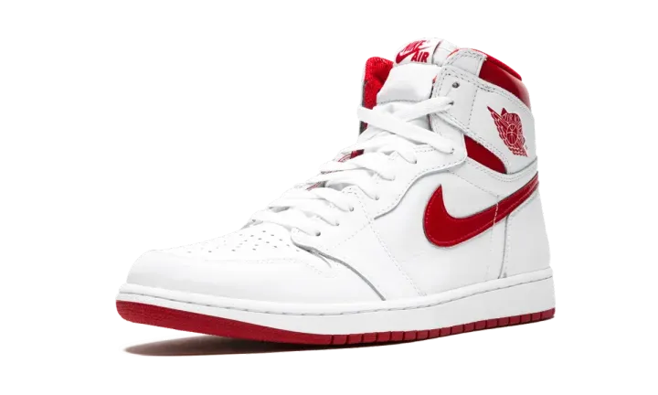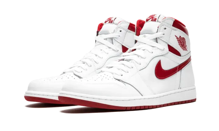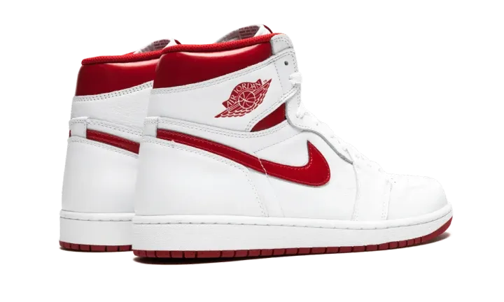 Similar to how the "Midnight Navy" retro from 2016 was approached, Jordan Brand provides a history lesson on the iconic Air Jordan 1 silhouette with the rerelease of a less familiar original colorway from 1985. Enter the Air Jordan 1 Retro High OG "Metallic Red". This shoe features a premium white leather upper with Varsity Red accents appearing throughout. Patent leather with a metallic look coats the ankle collar and Swoosh. The traditional "Wings" logo has its traditional resting place on the ankle. The Air Jordan 1 Retro High OG "Metallic Red" is also accompanied by an extra set of red laces.