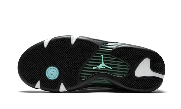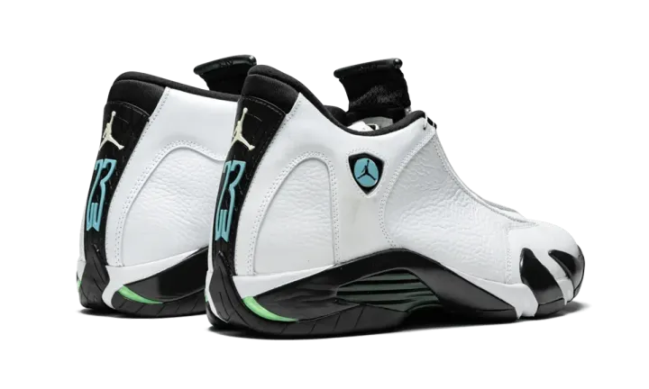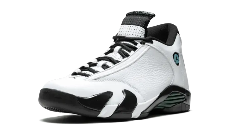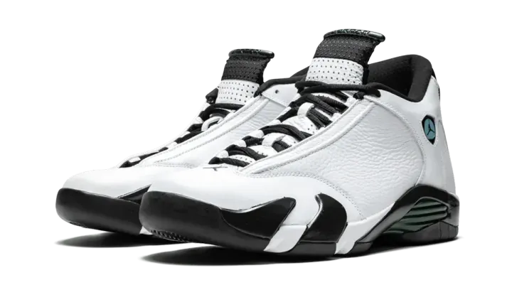 Long-awaited by many Air Jordan collectors, this original "Oxidized Green" colourway of the Air Jordan 14 finally made a return in 2016. This clean look features a white leather upper with black accents and Oxidized Green detailing. This footwear also features a round toe, stitched panels, a lace-up front fastening, a brand embossed tongue, branded heel counter, and a ridged rubber sole. These styles are supplied by a premium sneaker and streetwear marketplace. Stocking only the most sought-after footwear and clothing, they source and curate some of the most hard-to-find items from around the world.