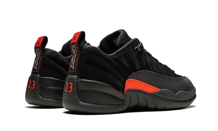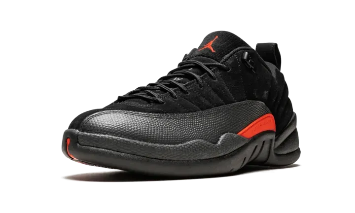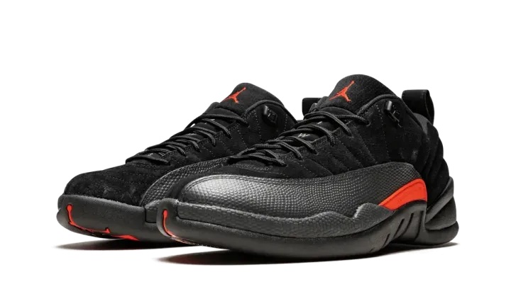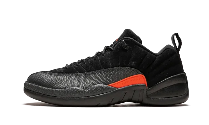 A subtle iteration of the Air Jordan 12 Retro low, these are perfect for everyday wear and fit into any shoe rotation. Buttery black suede coats the uppers, with a black mudguard and black soles to match. An orange set of logos brings out a bit of color.