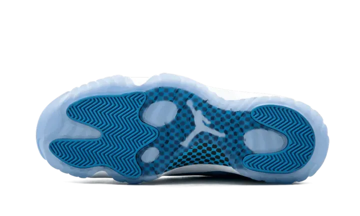 No matter how far Michael Jordan has come, he'll always pay homage to his alma mater, thee University of North Carolina. The Air Jordan 11 Low "UNC" features the familiar motif in "University Blue", a Tar Heels-inspired colorway that's a slight deviation from the "Columbia Blue" hue we're accustomed to seeing. Originally released in 2001, this low-top version of the silhouette is noted for its use of patent leather on the mudguard. The upper is constructed with a plush white leather. Jumpman branding is stitched on the heel, along with the number 23 printed on it. A matching white midsole and an icy translucent outsole completes the look.