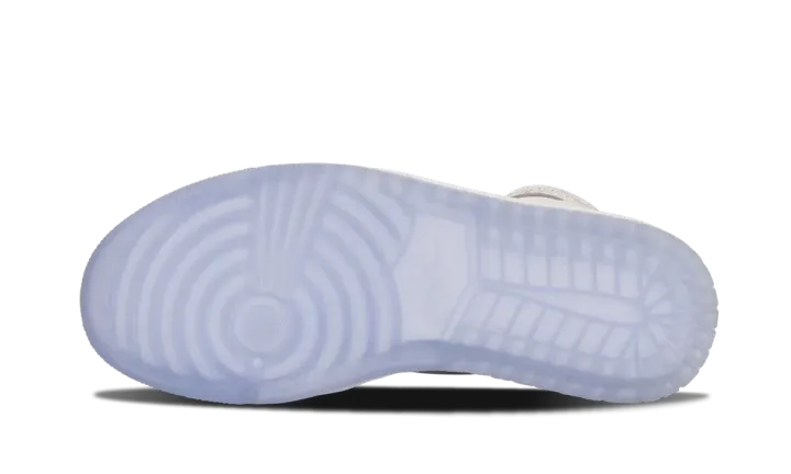 A special 30th anniversary edition of the legendary sneaker, the Air Jordan 1 is constructed in a premium white leather upper featuring the classic lasered design and reflective silver Swooshes. An icy clear sole sits below to complete the pristine celebratory theme.