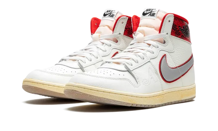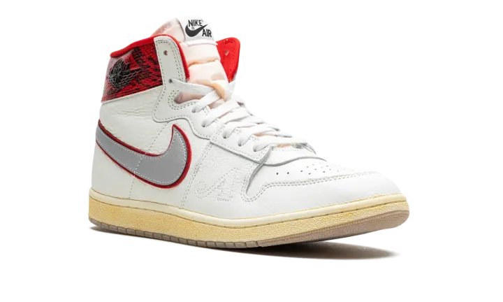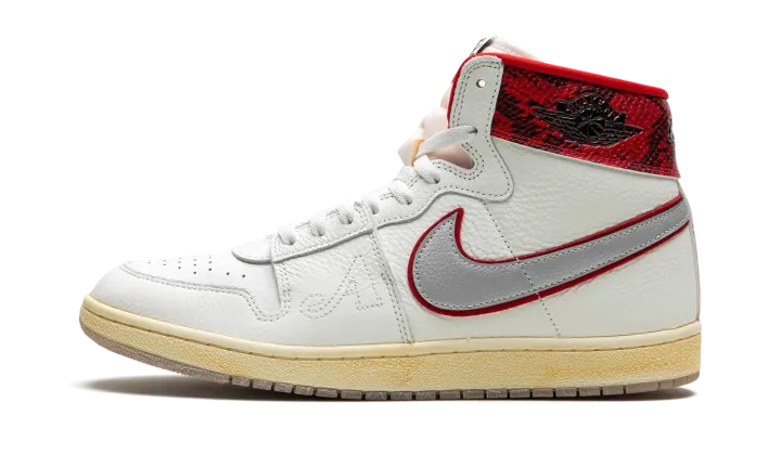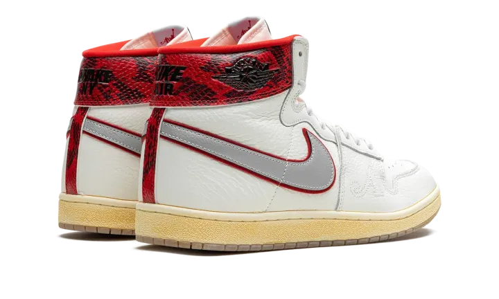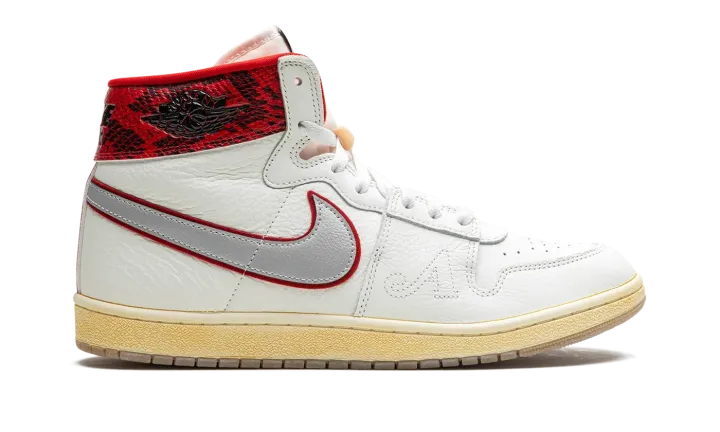 The Awake NY x Jordan Air Ship is a collaboration by the New York based streetwear brand on the retro basketball shoe with a mismatched design and luxurious snakeskin print. Designed by streetwear legend Angelo Baque, who previously worked for Stussy and Supreme before re-launching Awake NY in the mid-2010s, the Jordan Air Ship seen here features two different colored collars that give the shoe a distinctive look. Specifically, Game Royal leather can be found on the left shoe's collar, while Gym Red leather appears on the right shoe's collar. Both designs are complemented by faux snakeskin patterning. The upper features a white leather construction with silver leather Swoosh branding. An outline "A" logo can be found on the lateral side of the forefoot. An aged midsole and a semi-translucent outsole complete the look.